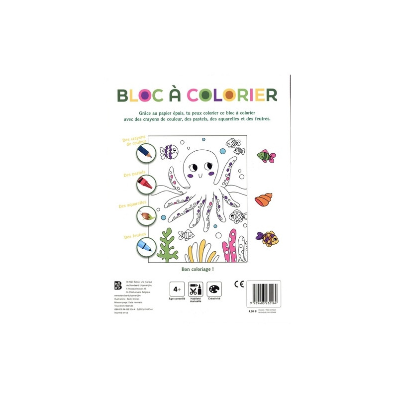 Grâce au papier épais, tu peux colorier ce bloc à colorier avec des crayons de couleur,...