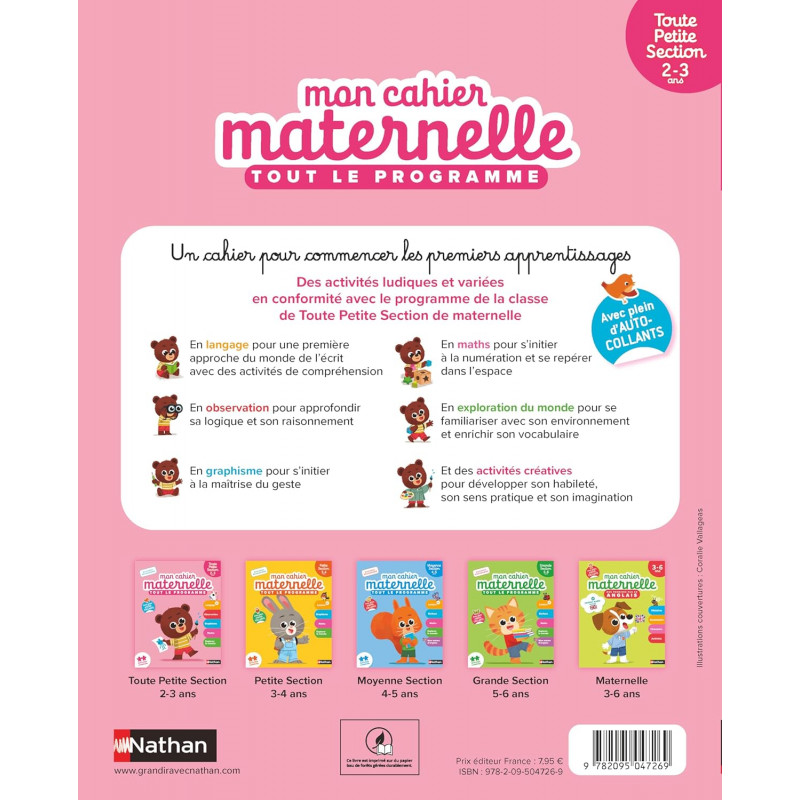 Conçu pour les enfants de Toute Petite Section (2-3 ans) , ce cahier d'activités propose une méthode complète et structurée couvrant tous les domaines essentiels du programme officiel.