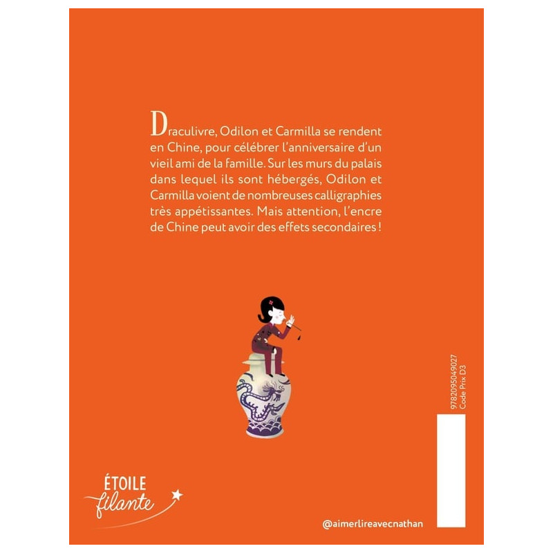 À Chengde, en Chine, Draculivre, Odilon et Carmilla découvrent un palais aux murs couverts de calligraphies appétissantes. Mais attention : l'encre de Chine n'est pas une encre comme les autres ! Entre tentation et mystère, nos amis vampires devront faire preuve de prudence dans cette nouvelle aventure captivante à lire dès 7 ans qui mêle fantastique et découverte culturelle...