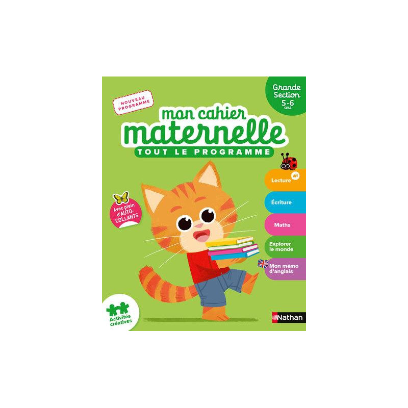 Préparez sereinement l'entrée au CP avec ce cahier complet qui couvre tous les apprentissages fondamentaux de la Grande Section. Une méthode progressive et ludique pour réussir la dernière année de maternelle. Spécialement conçu pour les enfants de Grande Section (5-6 ans), ce cahier propose : - PRÉPARATION COMPLÈTE AU CP : Écriture : maîtrise du geste et apprentissage des lettres Lecture : reconnaissance des mots et compréhension de textes Mathématiques : numération avancée et géométrie Exploration du monde : enrichissement des connaissances Activités créatives : développement de la motricité fine Initiation à l'anglais : vocabulaire illustré
