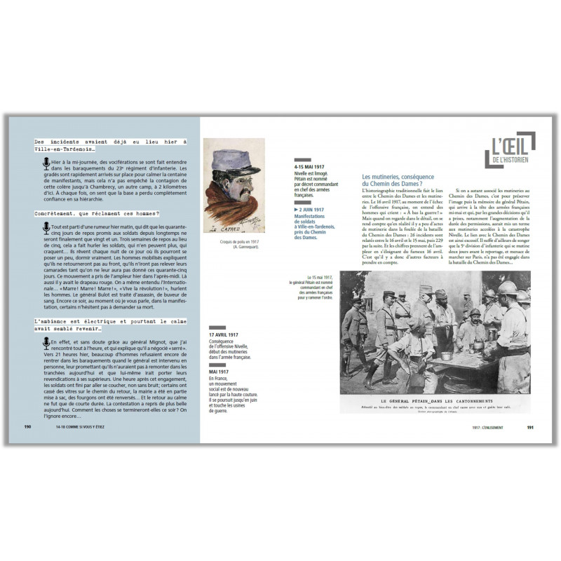 Et si les chaînes d'infos avaient existé pendant la Première Guerre mondiale ? Et s'il y avait eu des reportages en direct des champs de bataille, de Verdun ou du Chemin des Dames ? De la rédaction du Canard enchaîné pour sa première édition ? Des usines d'armement où les femmes travaillaient ou des villages détruits ? Du peloton d'exécution des mutins fusillés ou des représentations théâtrales sur le front ? Du procès de Mata Hari ou de Paris au moment de l'hommage au Soldat inconnu ? France info a fait comme si elle y était - même si heureusement elle n'y était pas, et vous non plus - et en a tiré cinquante chroniques, faisant revivre de l'intérieur l'épreuve de la mobilisation, les grandes batailles, le quotidien dans les tranchées, les grèves, l'armistice...