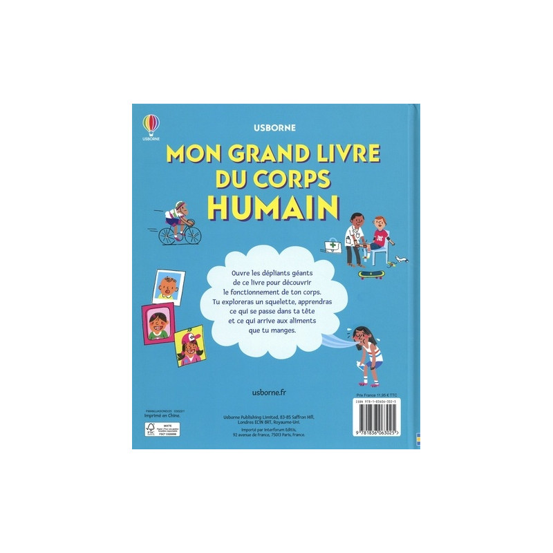 Dans cet album documentaire, les enfants pourront explorer un squelette géant, comprendre comment notre coeur pompe le sang, découvrir ce qu'il y a dans notre tête, apprendre ce qu'il arrive à la nourriture que nous mangeons, et bien plus encore. A chaque page ils retrouveront soit deux très grands rabats soit un dépliant géant de quatre pages qui s'ouvre en accordéon.