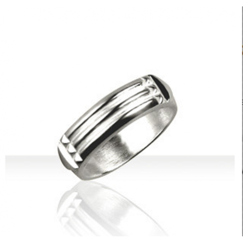 La bague atlante en Argent est une reproduction fidèle de l’original de 1860, autant par ses dimensions que par ses formes géométriques à savoir 2 triangles, 3 longs rectangles ainsi que 6 petits.