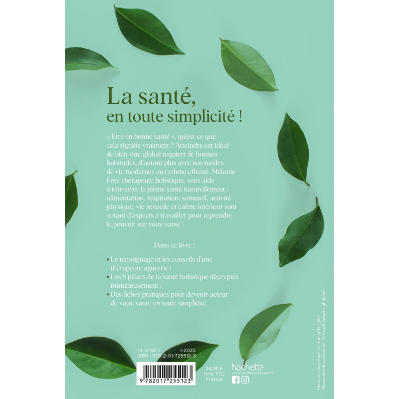 La santé, en toute simplicité ! " Etre en bonne santé " , qu'est-ce que cela signifie vraiment ? Atteindre cet idéal de bien-être global requiert de bonnes habitudes, d'autant plus avec nos modes de vie modernes au rythme effréné. Mélanie Frey, thérapeute holistique, vous aide à retrouver la pleine santé naturellement : alimentation, respiration, sommeil, activité physique, vie sexuelle et calme intérieur sont autant d'aspects à travailler pour reprendre le pouvoir sur votre santé ! Dans ce livre : - Le témoignage et les conseils d'une thérapeute aguerrie ; - Les 8 piliers de la santé holistique décryptés minutieusement ; - Des fiches pratiques pour devenir acteur de votre santé en toute simplicité .
