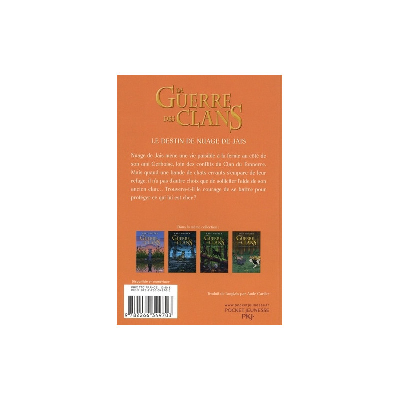 Le repos durement gagné de Nuage de Jais est menacé. Découvrez l'intégrale BD du Destin de Nuage de Jais en couleurs ! Nuage de Jais mène une vie paisible à la ferme au côté de son ami Gerboise, loin des conflits du Clan du Tonnerre. Mais quand une bande de chats errants s'empare de leur refuge, il n'a pas d'autre choix que de solliciter l'aide de son ancien… Le repos durement gagné de Nuage de Jais est menacé. Découvrez l'intégrale BD du Destin de Nuage de Jais en couleurs ! Nuage de Jais mène une vie paisible à la ferme au côté de son ami Gerboise, loin des conflits du Clan du Tonnerre. Mais quand une bande de chats errants s'empare de leur refuge, il n'a pas d'autre choix que de solliciter l'aide de son ancien clan... Trouvera-t-il le courage de se battre pour protéger ce qui lui est cher ?