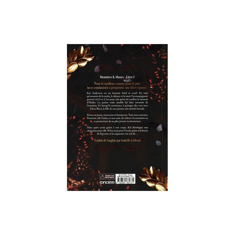 Kal Anderson est un homme froid et cruel. En tant qu'assassin de la mafia, le silence et la mort l'accompagnent partout où il va. C'est pour cela qu'on lui confère le surnom d'Hadès. La poésie seule semble lui faire ressentir de l'émotion. Et lorsqu'il commence à partager des vers avec Eléna Ricci, la fille de son patron, son monde bascule. Elena est jeune, … Kal Anderson est un homme froid et cruel. En tant qu'assassin de la mafia, le silence et la mort l'accompagnent partout où il va. C'est pour cela qu'on lui confère le surnom d'Hadès. La poésie seule semble lui faire ressentir de l'émotion. Et lorsqu'il commence à partager des vers avec Eléna Ricci, la fille de son patron, son monde bascule. Elena est jeune, innocente et lumineuse. Tout son contraire. Pourtant, elle l'attire, et une nuit, ils cèdent à la tentation en se promettant de ne plus jamais recommencer. Mais après avoir goûté à son corps, Kal développe une obsession pour elle. Il fera tout pour l'avoir, quitte à la forcer de l'épouser et la séquestrer sur son île...