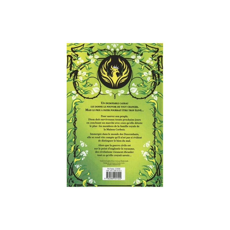 Un incroyable cadeau lui donne le pouvoir de tout changer. Mais le prix à payer pourrait être trop élevé... Pour sauver son peuple, Diem doit survivreaux trente prochains jours en concluant un marché avec ceux qu'elle déteste le plus : les membres de la famille royale de la Maison Corbois. Immergée dans le monde des Descendants, elle se rend vite compte … Un incroyable cadeau lui donne le pouvoir de tout changer. Mais le prix à payer pourrait être trop élevé... Pour sauver son peuple, Diem doit survivreaux trente prochains jours en concluant un marché avec ceux qu'elle déteste le plus : les membres de la famille royale de la Maison Corbois. Immergée dans le monde des Descendants, elle se rend vite compte qu'il n'est pas si évident de distinguer le bien du mal. Alors que la guerre civile est sur le point d'engloutir le royaume, des révélations viennent ébranler tout ce qu'elle croyait savoir...