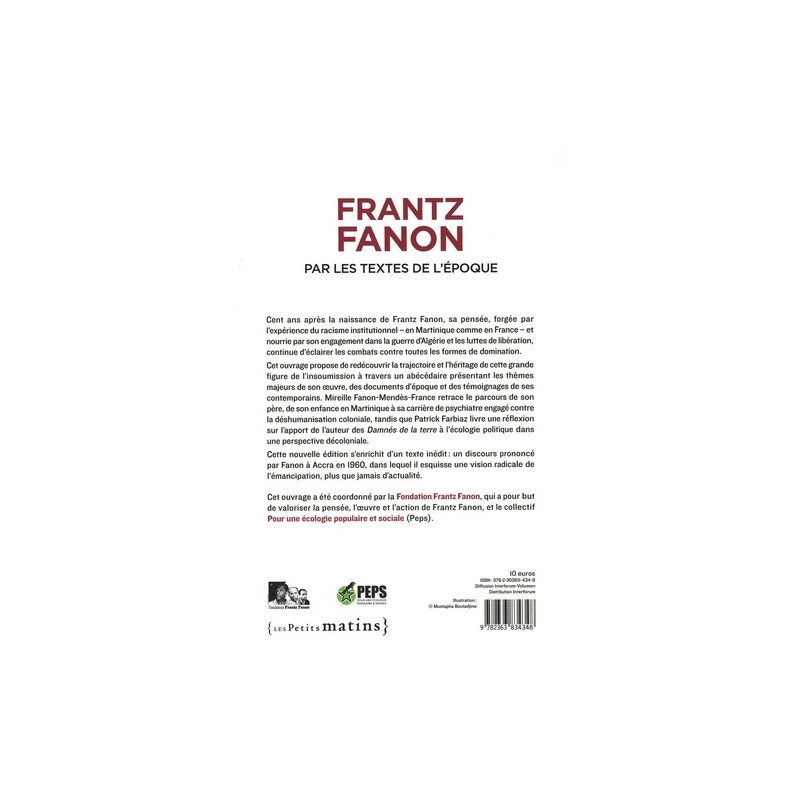 Cent ans après la naissance de Frantz Fanon, sa pensée, forgée par l'expérience du racisme institutionnel - en Martinique comme en France - et nourrie par son engagement dans la guerre d'Algérie et les luttes de libération, continue d'éclairer les combats contre toutes les formes de domination. Cet ouvrage propose de redécouvrir la trajectoire et l'héritage de cette grande figure de l'insoumission à travers un abécédaire présentant les thèmes majeurs de son oeuvre, des documents d'époque et des témoignages de ses contemporains. Mireille Fanon-Mendès-France retrace le parcours de son père, de son enfance en Martinique à sa carrière de psychiatre engagé contre la déshumanisation coloniale, tandis que Patrick Farbiaz livre une réflexion sur l'apport de l'auteur des Damnés de la terre à l'écologie politique dans une perspective décoloniale. Cette nouvelle édition s'enrichit d'un texte inédit : un discours prononcé par Fanon à Accra en 1960, dans lequel il esquisse une vision radicale de l'émancipation, plus que jamais d'actualité. Cet ouvrage a été coordonné par la Fondation Frantz Fanon, qui a pour but de valoriser la pensée, l'oeuvre et l'action de Frantz Fanon, et le collectif Pour une écologie populaire et sociale (Peps).