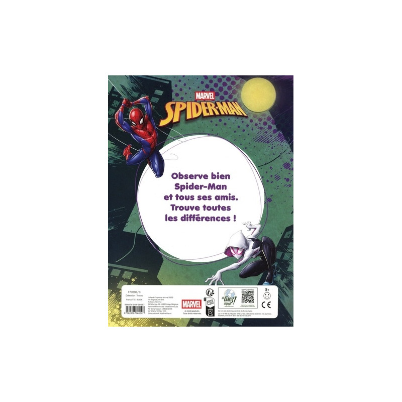Plonge dans l'univers de Spider-Man grâce à ce livre entièrement dédié au jeu des différences ! À chaque page, un nouveau défi : pourras-tu retrouver toutes les différences ?