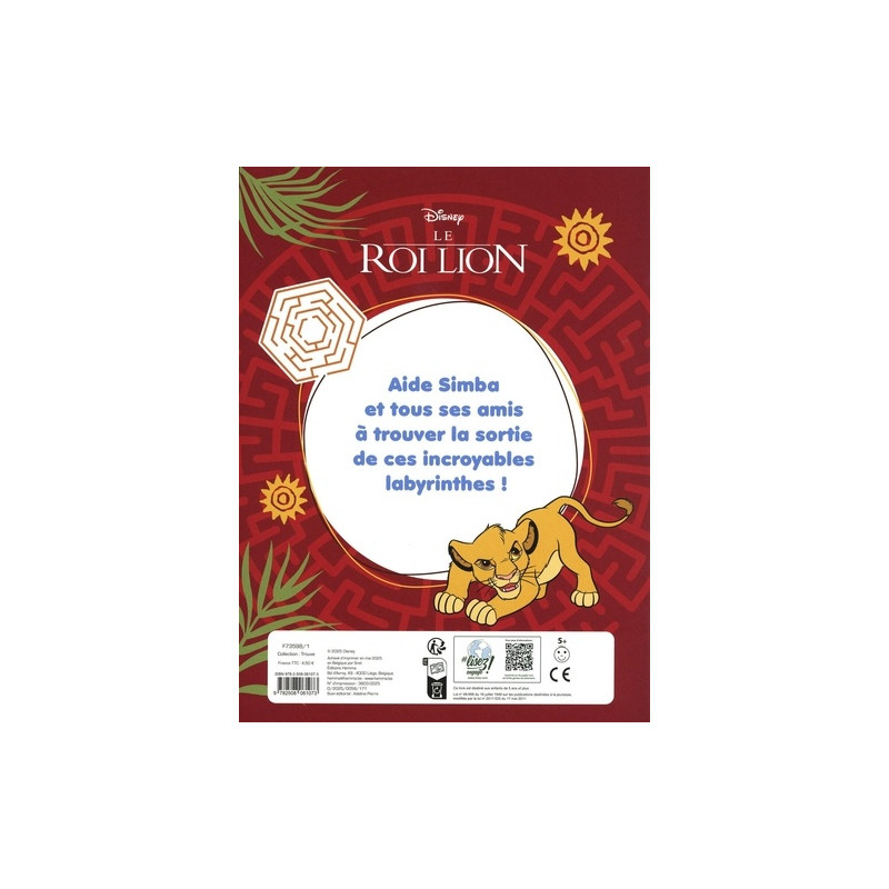 Plonge dans l'univers du Roi Lion grâce à ce livre de jeux entièrement dédié aux labyrinthes ! `À chaque page,...