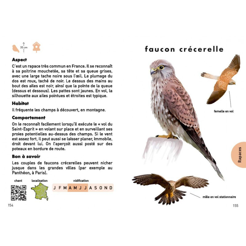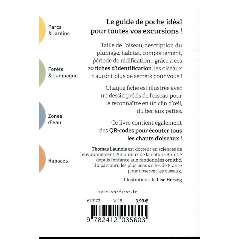 Le guide d'identification pour tous les débutants ! Ouvrez l'œil ! Une balade en pleine nature, ou même un simple tour dans un square de ville, et avec un peu d'attention, vous verrez que les oiseaux sont omniprésents dans votre quotidien. Mais savez-vous vraiment les reconnaître ? Couleur des plumes, comportement, chant, habitat... grâce à ces 70 fiches d'identification, les oiseaux n'auront plus de secrets pour vous ! Le livre contient aussi des flaschcodes pour écouter les chants des oiseaux ! Chaque fiche est illustrée avec un dessin très précis de l'oiseau pour le reconnaître en un clin d'œil, du bec aux pattes.