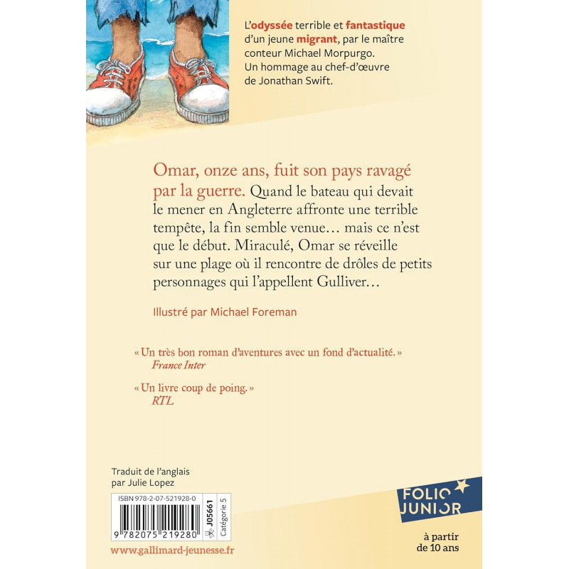 Omar, onze ans, fuit son pays ravagé par la guerre. Quand le bateau qui devait le mener en Angleterre affronte une terrible tempête, la fin semble venue... mais ce n'est que le début. Miraculé, Omar se réveille sur une plage où il rencontre de drôles de petits personnages qui l'appellent Gulliver...