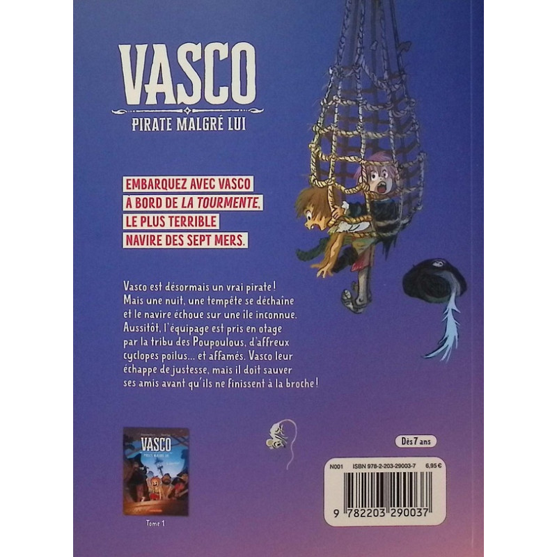 Une nouvelle série pour les jeunes lecteurs avides d'aventures en haute mer ! Embarquez avec Vasco à bord de la Tourmente, un navire de pirates qui sillonne les Sept Mers. Vasco fait désormais partie de l'équipage de la Tourmente. Mais une nuit, une tempête se déchaîne et le navire échoue sur une île inconnue. À peine remis de leurs émotions, les pirates sont pris en otage par la tribu des Pouloulous, de terribles cyclopes extrêmement poilus... et affamés ! Vasco parvient à leur filer entre les griffes, mais il va maintenant devoir sauver ses amis avant qu'ils ne finissent à la broche !