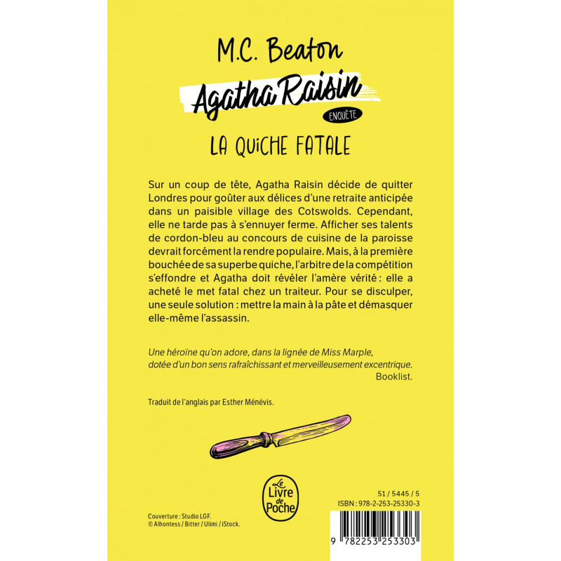 Sur un coup de tête, Agatha Raisin décide de quitter Londres pour goûter aux délices d'une retraite anticipée dans un paisible village des Costwolds. Cependant, elle ne tarde pas à s'ennuyer ferme. Afficher ses talents de cordon bleu au concours de cuisine de la paroisse devrait forcément la rendre populaire. Mais, à la première bouchée de sa superbe quiche, l'arbitre de la compétition s'effondre et Agatha doit révéler l'amère vérité : elle a acheté le met fatal chez un traiteur.