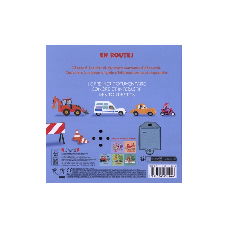 Un concept unique pour cet ouvrage : 12 puces sonores avec un bruit suivi d'une phrase descriptive pour que le tout-petit associe le son et l'image et apprenne des mots nouveaux. Ainsi, il entend le bruit de l'avion et écoute la description de ce qu'il entend : " L'avion décolle ".