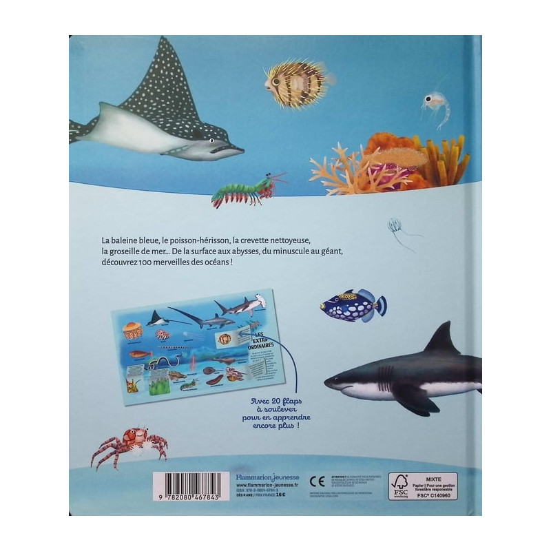 La baleine bleue, le poisson-hérisson, la crevette nettoyeuse, la groseille de mer... De la surface aux abysses, du minuscule au géant, découvrez 100 merveilles des océans ! Avec 20 flaps à soulever pour en apprendre encore plus !