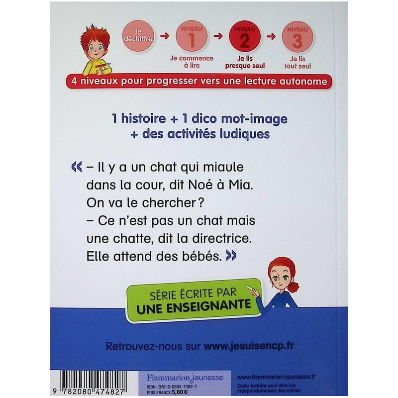 « Il y a un chat qui miaule dans la cour, dit Noé à Mia. On va le chercher ? - Ce n'est pas un chat mais une chatte, dit la directrice. Elle attend des bébés.»