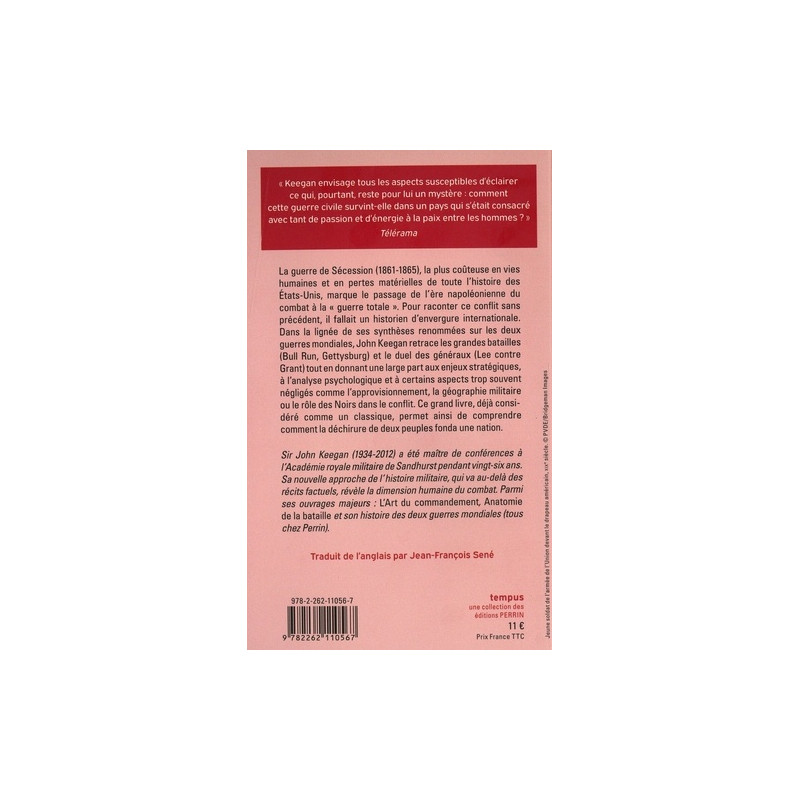 Pour raconter cette guerre sans précédent, il fallait un historien d'envergure internationale. Dans la lignée de ses synthèses renommées sur les deux guerres mondiales, John Keegan retrace les grandes batailles (Bull Run, Gettysburg) et le duel des généraux (Lee contre Grant) tout en donnant une large part aux enjeux stratégiques, à l'analyse psychologique et à certains aspects trop souvent négligés comme l'approvisionnement, la géographie militaire ou le rôle des Noirs dans le conflit.