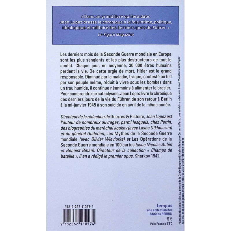 De son retour à Berlin en janvier à son suicide le 30 avril 1945, Jean Lopez livre la chronique des derniers jours du Führer à travers une étude minutieuse de ses déplacements, les témoignages de ceux qui l'ont entouré et les luttes intestines au coeur d'un IIIe Reich chancelant. Un ouvrage de référence déjà devenu un classique.