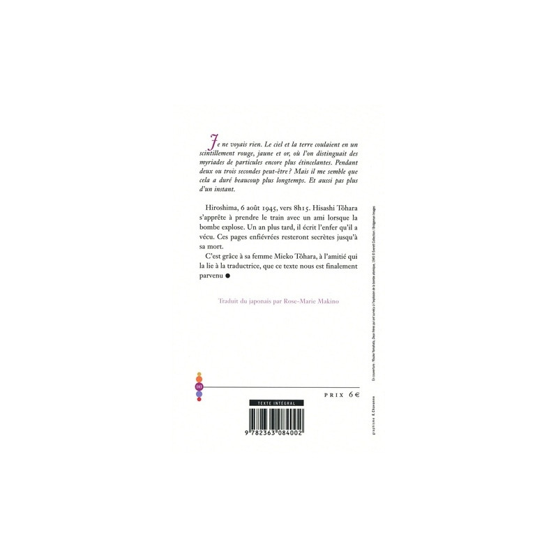Un récit de la catastrophe d'Hiroshima vécue par l'auteur, réédité pour la célébration des 80 ans de la bombe atomique.