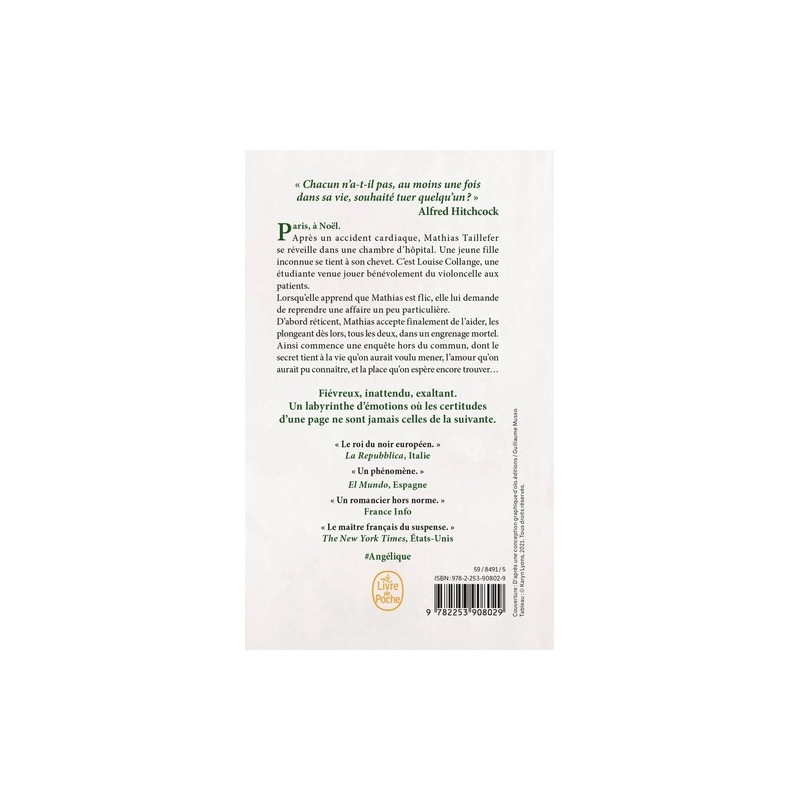 Paris, à Noël. Après un accident cardiaque, Mathias Taillefer se réveille dans une chambre d'hôpital. Une jeune fille inconnue se tient à son chevet. C'est Louise Collange, une étudiante venue jouer bénévolement du violoncelle aux patients. Lorsqu'elle apprend que Mathias est flic, elle lui demande de reprendre une affaire un peu particulière. D'abord réticent, Mathias accepte finalement de l'aider, les plongeant dès lors, tous les deux, dans un engrenage mortel.