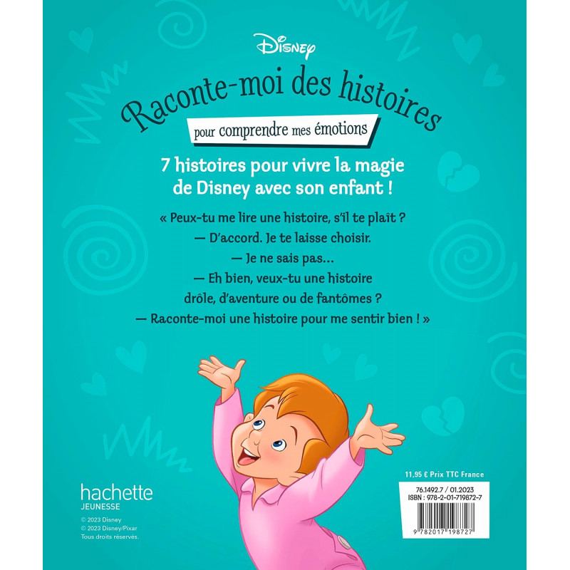 Un recueil d'histoires sur le thème des émotions avec les héros Disney et Pixar ! 7 histoires illustrées avec Alice, Anna et Elsa, Simba, Luca, Peter Pan, Jasmine et tant d'autres. Ce recueil contient les histoires suivantes : - Alice au Pays des Merveilles : La Reines des Peurs - Luca : L'histoire du film - La Reine des Neiges : Le jouet perdu - Aladdin : Une princesse digne de ce nom - Le Roi Lion : Le sens des responsabilités ! - Vice-Versa : Une tête brûlée ! - Peter Pan : Une partie de cache-cache Dès 4 ans