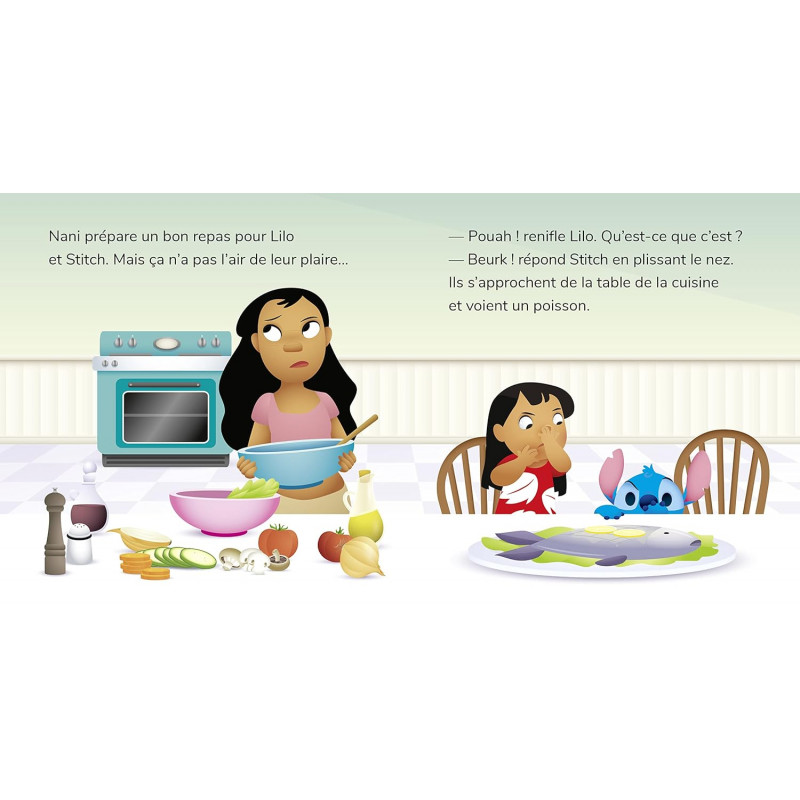 La nouvelle collection de Premières histoires Disney pour accompagner les 0-3 ans dans leurs premières découvertes ! - Une petite histoire inédite et amusante, à lire avec son tout-petit pour un moment de tendresse. - Une maquette épurée et moderne, avec des pages indéchirables, adaptée aux bébés. Dès 18 mois. L'histoire : Lilo n'aime que les pâtes. Et si Nani faisait plutôt découvrir les fruits et légumes à Stitch ? Le petit monstre aime tout... et il serait bien capable de donner envie à son amie de goûter aussi !