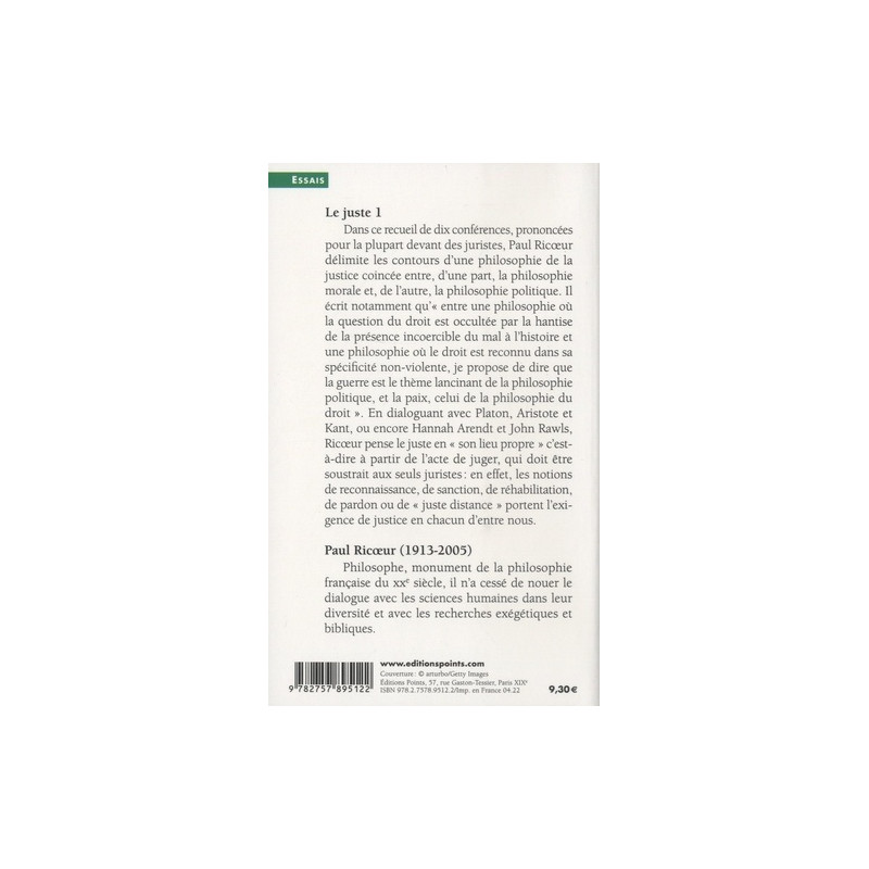 Dans ce recueil de dix conférences, prononcées pour la plupart devant des juristes, Paul Ricoeur délimite les contours d'une philosophie de la justice coincée entre, d'une part, la philosophie morale et, de l'autre, la philosophie politique. Il écrit notamment qu'"entre une philosophie où la question du droit est occultée par la hantise de la présence incoercible du mal à l'histoire et une philosophie où le droit est reconnu dans sa spécificité non-violente, je propose de dire que la guerre est le thème lancinant de la philosophie politique, et la paix, celui de la philosophie du droit".