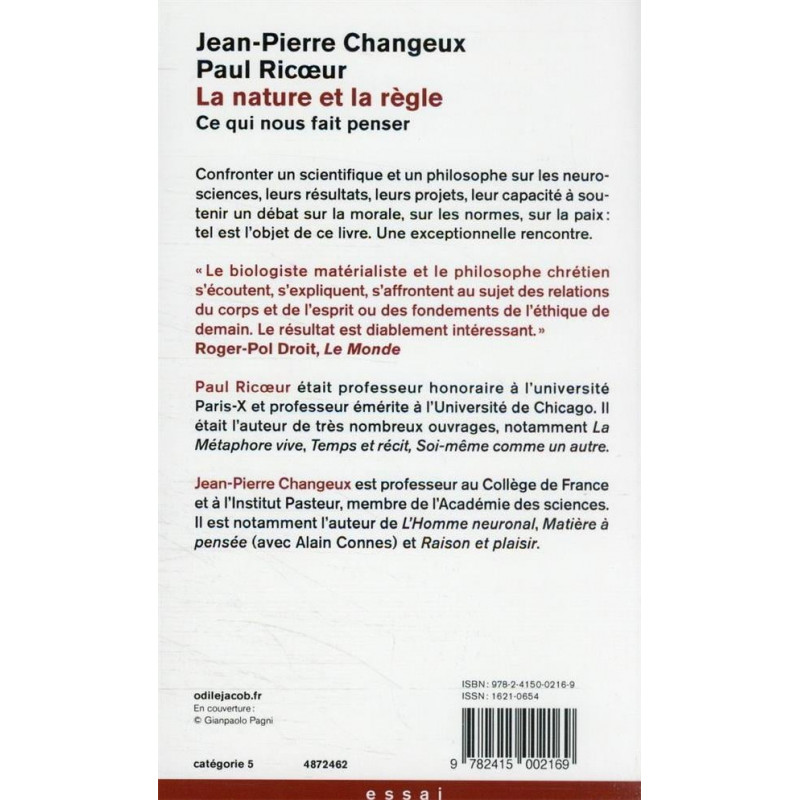 Confronter un scientifique et un philosophe sur les neurosciences, leurs résultats, leurs projets, leur capacité à soutenir un débat sur la morale, sur les normes, sur la paix : tel est l'objet de ce livre. Une exceptionnelle rencontre. "Le biologiste matérialiste et le philosophe chrétien s'écoutent, s'expliquent, s'affrontent au sujet des relations du corps et de l'esprit ou des fondements de l'éthique de demain.