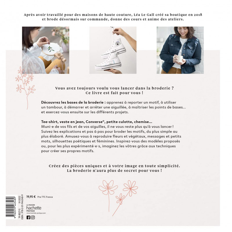 Vous avez toujours voulu vous lancer dans la broderie ? Ce livre est fait pour vous ! Découvrez les bases de la broderie : apprenez à reporter un motif, à utiliser un tambour, à démarrer et arrêter une aiguillée, à maîtriser les points de bases... et exercez-vous ensuite sur les différents projets. Tee-shirt, veste en jean, Converse, petite culotte, chemise... Muni·e de vos fils et de vos aiguilles, il ne vous reste plus qu'à vous lancer ! Suivez les explications et pas à pas pour broder les motifs, du plus simple au plus élaboré.
