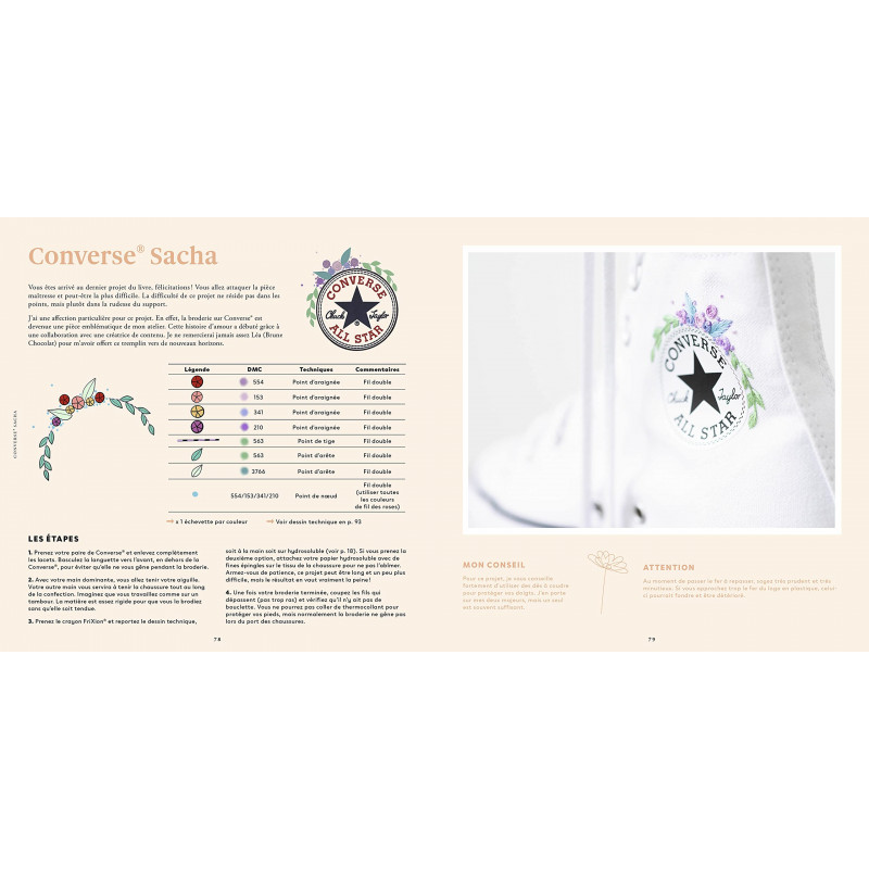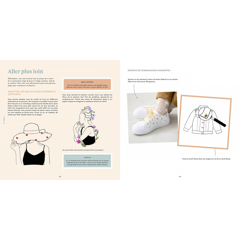 Amusez-vous à reproduire fleurs et végétaux, messages et petits mots, silhouettes poétiques et féminines. Inspirez-vous des modèles proposés ou, pour les plus expérimenté·e·s, imaginez les vôtres grâce aux techniques pour créer ses propres motifs. Créez des pièces uniques et à votre image en toute simplicité. La broderie n'aura plus de secret pour vous !