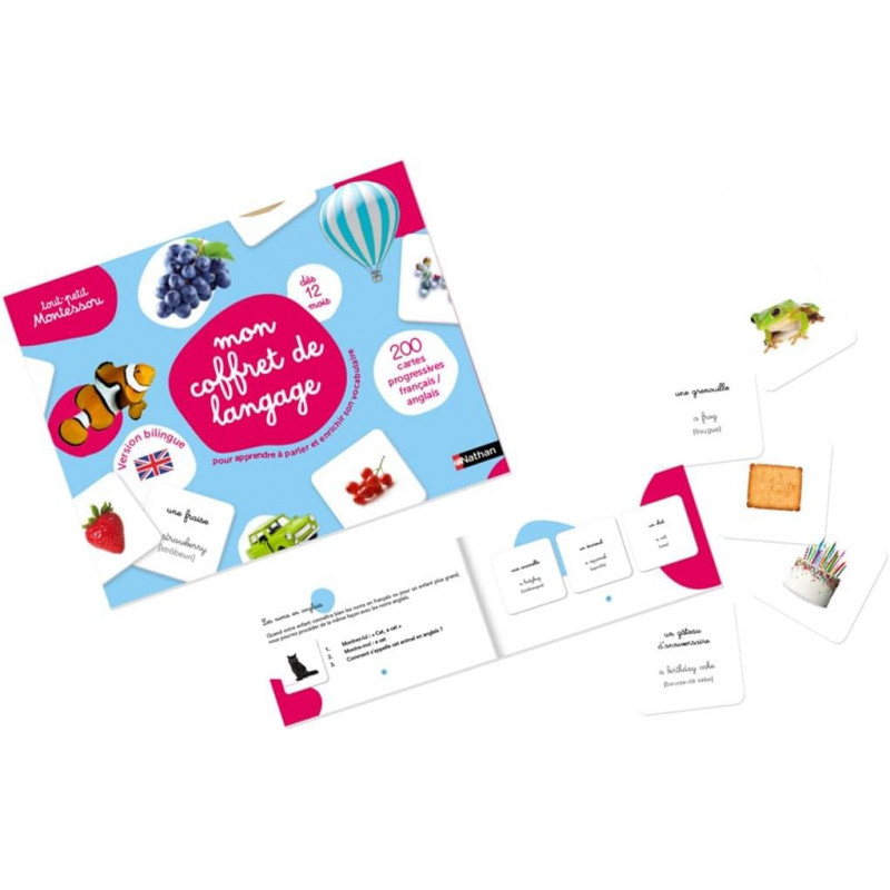 Offrez à votre bébé un départ linguistique exceptionnel avec ce coffret Montessori bilingue ! 200 cartes évolutives pour développer naturellement le vocabulaire en français et en anglais dès 12 mois. Mon coffret de langage bilingue : l'éveil linguistique Montessori pour les tout-petits. Inspiré de la pédagogie Montessori, ce coffret de langage bilingue est spécialement conçu pour accompagner le développement linguistique naturel de votre enfant dès 12 mois. Avec ses 200 cartes progressives français-anglais,...