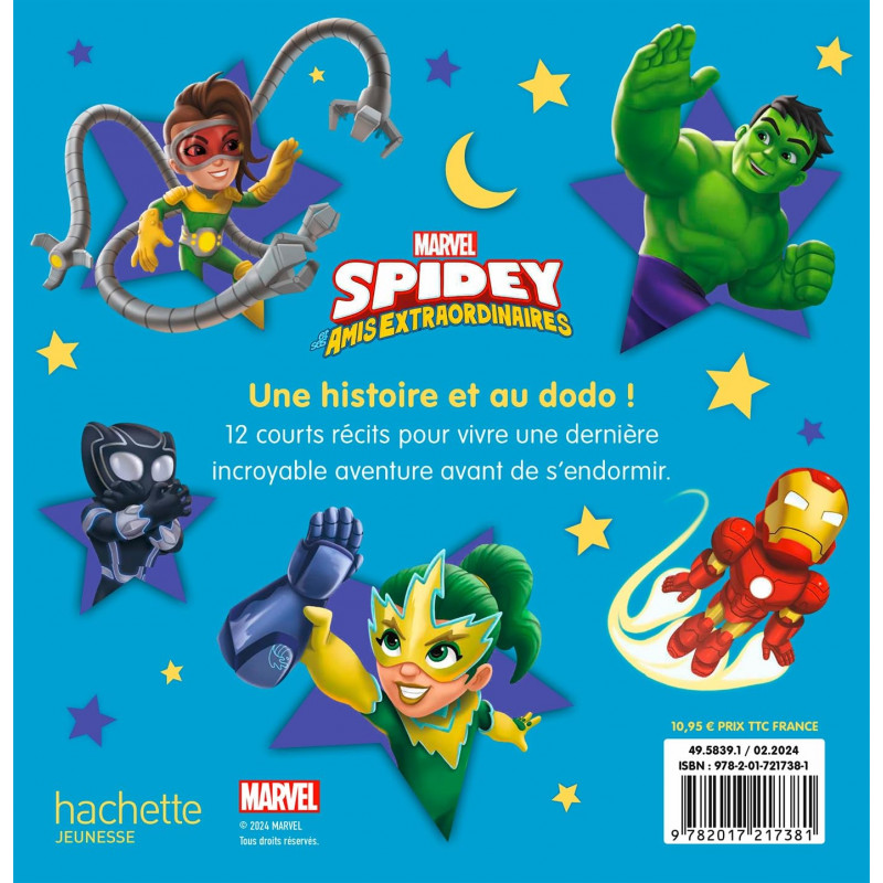 Découvrez les plus grandes aventures de Spidey (Peter), Ghost-Spider (Gwen) et Spin (Miles) dans ce recueil de 12 histoires richement illustrées, faciles et rapides à lire. Les textes sont adaptés aux plus petits pour un temps de lecture de 5 minutes par histoire.