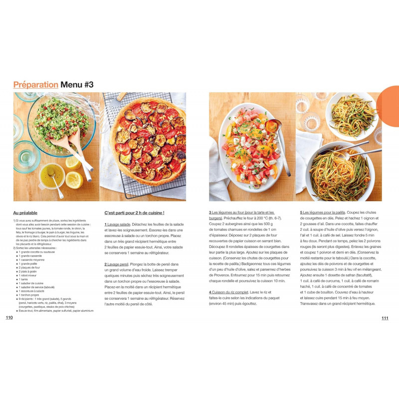 Pour chaque semaine, retrouvez : Le panier avec des produits de saison. La liste des courses et les menus hebdomadaires. Le déroulé des préparations à réaliser en 2 heures ou moins. Le résultat de votre session et les gestes à réaliser le jour même. 16 menus hebdomadaires complets, soit 80 repas équilibrés pour toute la famille. Des plats qui privilégient …