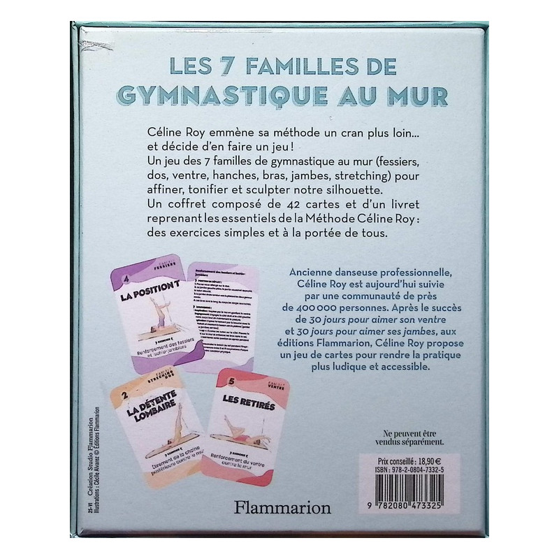 Céline Roy emmène sa méthode un cran plus loin... et décide d 'en faire un jeu ! Un jeu des 7 familles de gymnastique au mur (fessiers, dos, ventre, hanches, bras, jambes, stretching) pour affiner, tonifier et sculpter notre silhouette. Un coffret composé de 42 cartes et d'un livret reprenant les essentiels de la Méthode Céline Roy : des exercices simples et à la portée de tous.