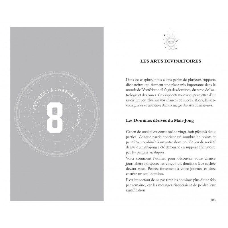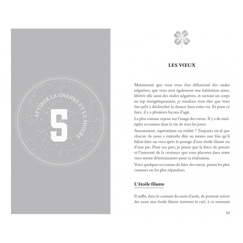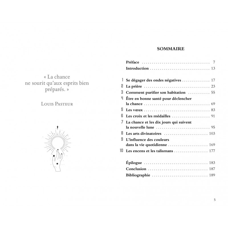 Dans cet ouvrage, il offre au lecteur différents outils pratiques et concrets à utiliser au quotidien pour déclencher la chance ainsi que des rituels magiques créés, testés et améliorés par ses soins.