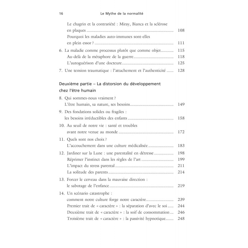 Au cours de ses quarante années d'expérience clinique, le Dr Maté a découvert que la définition courante de la "normalité" est fausse : pratiquement toutes les maladies sont en fait le reflet naturel d'une vie dans une culture anormale, à mesure que nous nous éloignons de plus en plus de notre véritable moi. Mais il nous montre aussi le chemin de la reconnexion et de la guérison.