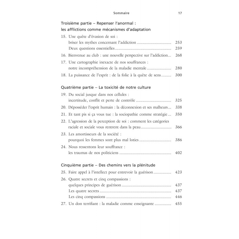 Dans son nouveau chef-d'oeuvre, Gabor Maté, médecin de renom, spécialiste des addictions et auteur best-seller, dissèque les causes sous-jacentes de ce malaise - physique et émotionnel - et fait le lien entre nos souffrances personnelles et les pressions de la vie moderne.