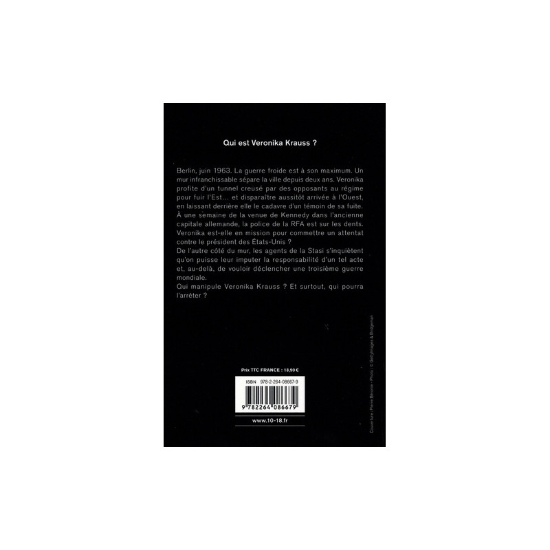 En pleine guerre froide, alors que complots, espions, et luttes de pouvoir s'accumulent à Berlin, Veronika et June devront chacune naviguer entre dangers et double-jeux pour accomplir leur destin et peut-être changer le cours de l'Histoire. Berlin, juin 1963. La guerre froide est à son maximum. Un mur infranchissable sépare la ville depuis deux ans. Veronika profite d'un tunnel creusé par des opposants au régime pour fuir l'Est... et disparaître aussitôt arrivée à l'Ouest, en laissant derrière elle le cadavre d'un témoin de sa fuite. A une semaine de la venue de Kennedy dans l'ancienne capitale allemande, la police de la RFA est sur les dents. Veronika est-elle en mission pour commettre un attentat contre le président des Etats-Unis ? De l'autre côté du mur, les agents de la Stasi s'inquiètent qu'on puisse leur imputer la responsabilité d'un tel acte et, au-delà, de vouloir déclencher une troisième guerre mondiale. Qui manipule Veronika Krauss ? Et surtout, qui pourra l'arrêter ?