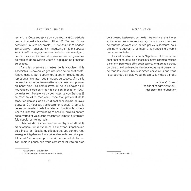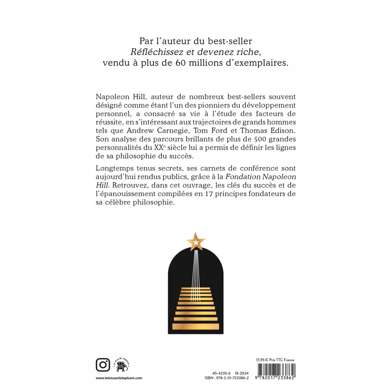 Longtemps tenus secrets, ses carnets de conférence sont aujourd'hui rendus publics, grâce à la Fondation Napoleon Hill. Retrouvez, dans cet ouvrage, les clés du succès et de l'épanouissement compilées en 17 principes fondateurs de sa célèbre philosophie.