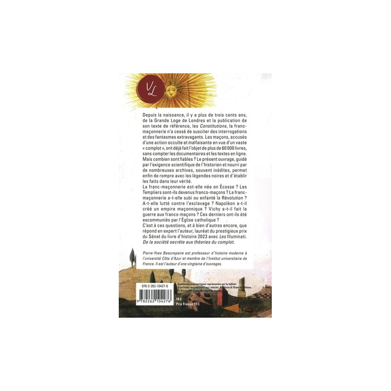 Depuis la naissance, il y a plus de trois cents ans, de la Grande Loge de Londres et la publication de son texte de référence, les Constitutions, la franc-maçonnerie n'a cessé de susciter des interrogations et des fantasmes extravagants. Les maçons, accusés d'une action occulte et malfaisante en vue d'un vaste "complot" ; ont déjà fait l'objet de plus de 60 00… Depuis la naissance, il y a plus de trois cents ans, de la Grande Loge de Londres et la publication de son texte de référence, les Constitutions, la franc-maçonnerie n'a cessé de susciter des interrogations et des fantasmes extravagants. Les maçons, accusés d'une action occulte et malfaisante en vue d'un vaste "complot" ; ont déjà fait l'objet de plus de 60 000 livres, sans compter les documentaires et les textes en ligne. Mais combien sont fiables ? Le présent ouvrage, guidé par l'exigence scientifique de l'historien et nourri par de nombreuses archives, souvent inédites, permet enfin de rompre avec les légendes noires et d'établir les faits dans leur vérité. La franc-maçonnerie est-elle née en Ecosse ? Les Templiers sont-ils devenus francs-maçons ? La franc-maçonnerie a-t-elle subi ou enfanté la Révolution ? A-t-elle lutté contre l'esclavage ? Napoléon a-t-il créé un empire maçonnique ? Vichy a-t-il fait la guerre aux francs-maçons ? Ces derniers ont-ils été excommuniés par l'Eglise catholique ? C'est à ces questions, et à bien d'autres encore, que répond en expert l'auteur, lauréat du prestigieux prix du Sénat du livre d'histoire 2023 avec Les Illuminati. De la société secrète aux théories du complot.