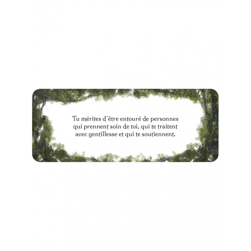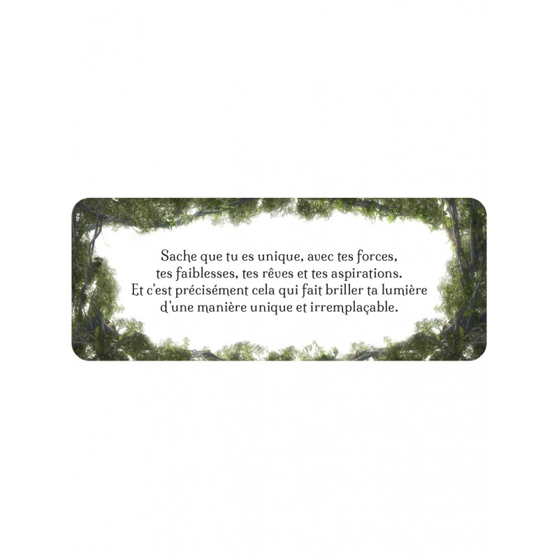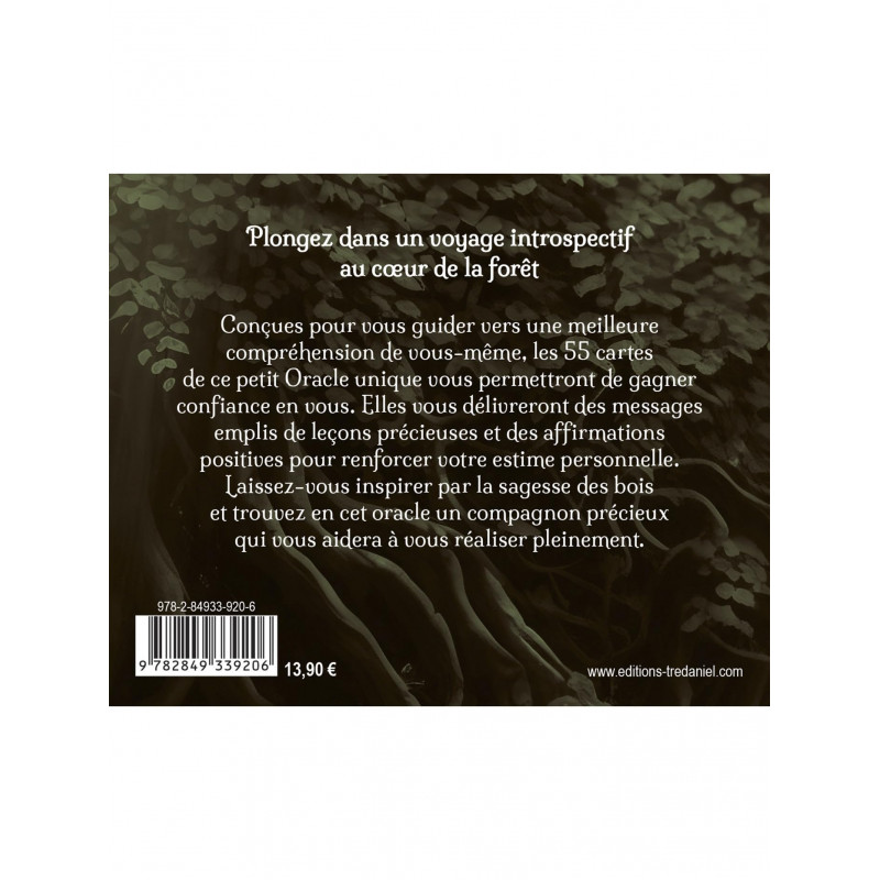 Plongez dans un voyage introspectif puissant au cœur de la forêt. Conçu pour vous guider vers une meilleure compréhension de vous-même, les 55 cartes de ce petit Oracle vous permettront de gagner confiance en vous. Elles vous délivreront des messages emplis de leçons précieuses et des affirmations positives pour renforcer votre estime personnelle. Laissez-vous inspirer par la sagesse des bois et trouvez en cet oracle un compagnon qui vous aidera à vous réaliser pleinement.