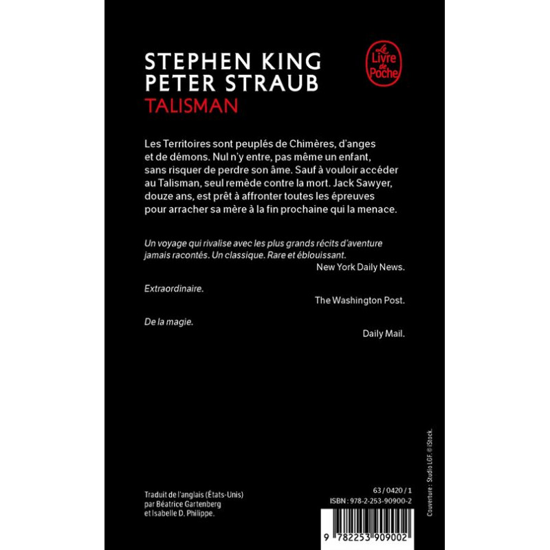 Les Territoires sont peuplés de chimères, de bonnes fées et de démons. Nul n'y entre, pas même un enfant, sans risquer de perdre son âme. Sauf à vouloir accéder au Talisman, seul remède contre la mort. Jack Sawyer, douze ans, est prêt à affronter toutes les épreuves pour arracher sa mère à la fin prochaine qui la menace. Un voyage qui rivalise avec les plus grands récits d'aventure jamais racontés.