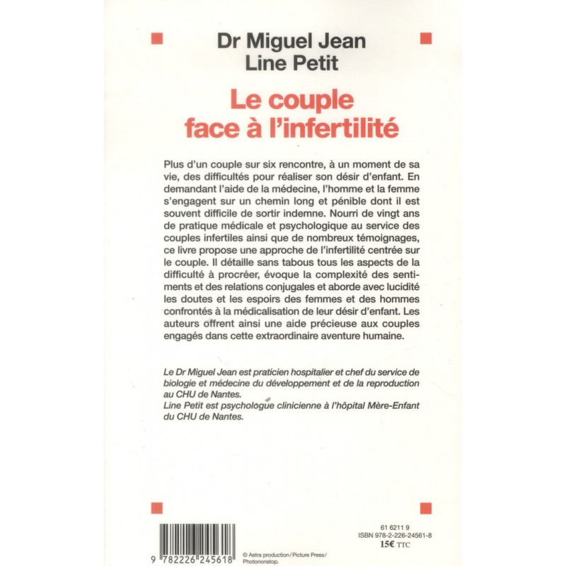 Plus d'un couple sur six rencontre, à un moment de sa vie, des difficultés pour réaliser son désir d'enfant. En demandant l'aide de la médecine, l'homme et la femme s'engagent sur un chemin long et pénible dont il est souvent difficile de sortir indemne. Nourri de vingt ans de pratique médicale et psychologique au service des couples infertiles ainsi que de nombreux témoignages, ce livre propose une approche de l'infertilité centrée sur le couple. Il détaille sans tabous tous les aspects de la difficulté à procréer, évoque la complexité des sentiments et des relations conjugales et aborde avec lucidité les doutes et les espoirs des femmes et des hommes confrontés à la médicalisation de leur désir d'enfant. Les auteurs offrent ainsi une aide précieuse aux couples engagés dans cette extraordinaire aventure humaine.