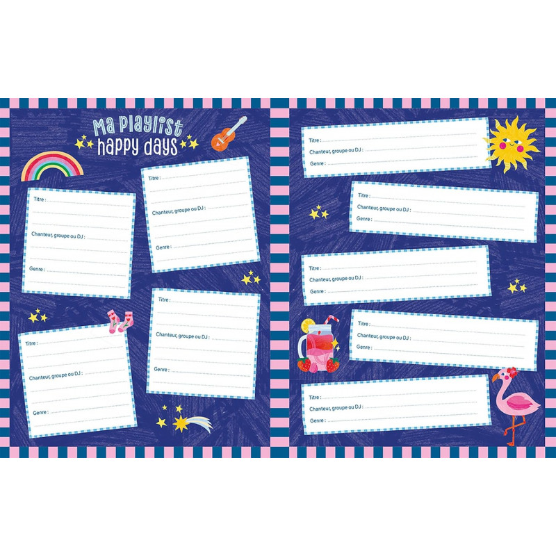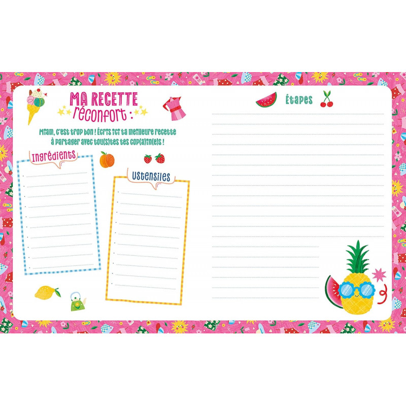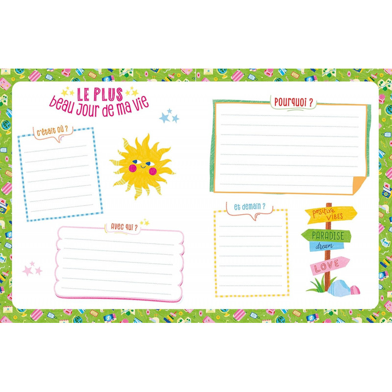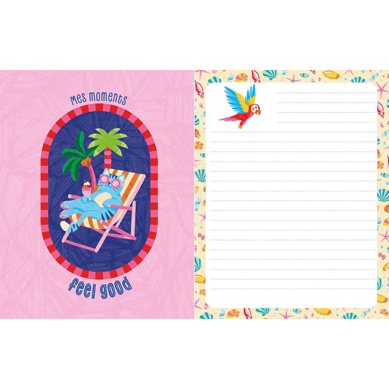 Un journal intime, joyeux et coloré, à personnaliser sur la thématique des vacances de 144 pages avec son cadenas et 2 clefs, idéal pour conserver ses souvenirs et ses secrets. Avec une couverture mousse réhaussée d'un fer à dorer de couleur et d'un pantone. A l'intérieur, des pages lignées de journal intime et des pages éditorialisées pour guider les enfants au fil de leurs vacances (Ma to-do des vacances, mes destinations préférées, ma playlist de l'été, dans ma valise, il y a..., mes photos de vacances etc". Avec 1 planche de stickers. L'univers pétillant, positif et poétique aux couleurs vibrantes de Limistic.