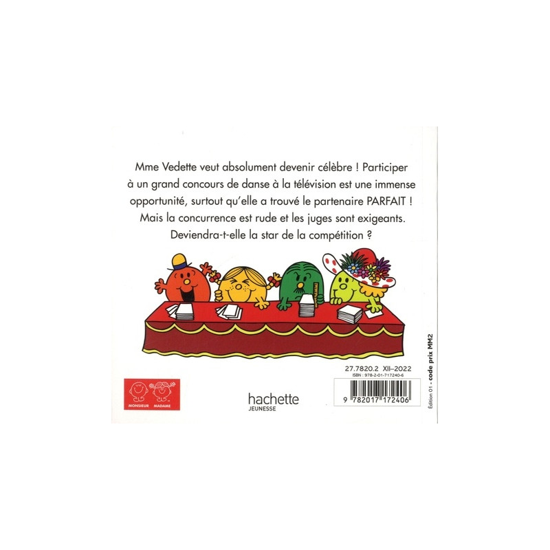 Mme Vedette veut absolument devenir célèbre ! Participer à un grand concours de danse à la télévision est une immense opportunité, surtout qu’elle a trouvé le partenaire PARFAIT ! Mais la concurrence est rude et les juges sont exigeants. Deviendra-t-elle la star de la compétition ?