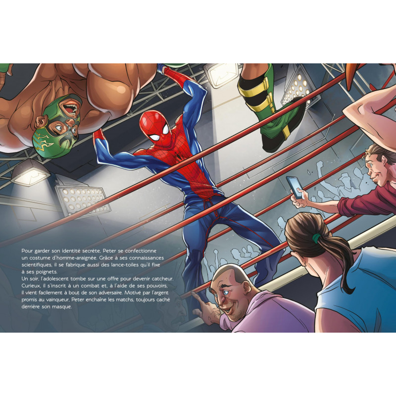 Toute l'histoire du héros Spider-Man dans un album grand format, pour un moment de lecture à partager entre parents et enfants. - L'histoire complète du héros avec des textes courts et faciles à lire, rythmés par des dialogues et des images en pleine page. Dès 3 ans. Résumé : Peter Parker est un lycéen new-yorkais passionné par les sciences. Il mène une vie tranquille, entouré de ses amis, de sa Tante May et de son Oncle Ben.