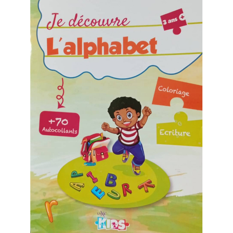 Livre de coloriage et d'apprentissage je découvre l'alphabet, plus de 70 autocollants , coloriage , écriture pour enfants.
