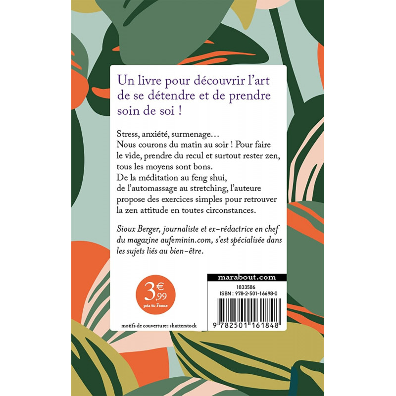 Stress, anxiété, surmenage... Nous courons du matin au soir ! Pour faire le vide, prendre du recul et surtout rester zen, tous les moyens sont bons. De la méditation au feng shui, de l'automassage au stretching, l'auteure propose des exercices simples pour retrouver la zen attitude en toutes circonstances