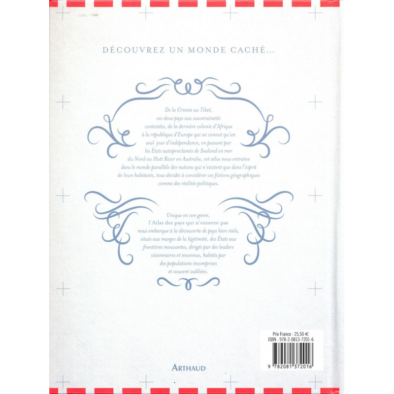 De la Crimée au Tibet, ces deux pays aux souverainetés contestées, de la dernière colonie d'Afrique à la république d'Europe qui ne connut qu'un seul jour d'indépendance, en passant par les Etats autoproclamés de Sealand en mer du Nord ou Hutt River en Australie, cet atlas nous entraîne dans le monde parallèle des nations qui n'existent que dans l'esprit de leurs habitants, tous décidés à considérer ces fictions géographiques comme des réalités politiques.